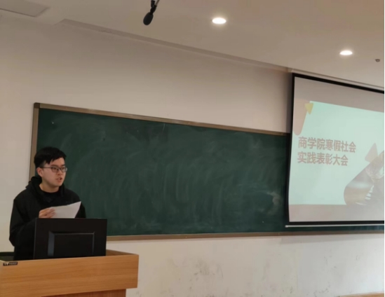 为充分展现商学院寒假社会实践工作成果,同时表彰和鼓励实践中优秀的学生代表,商学院于3月26日下午在教学楼2号楼107教室召开了2023年寒假社会实践表彰大会。商学院团委副书记李垚老师、社会实践优秀指导老师、社会实践优秀学生代表及商学院班长、团支书们参加了本次大会,会议由马悦悦同学主持。