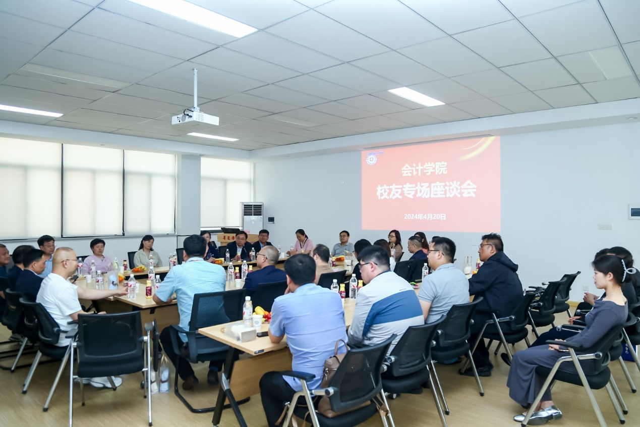 座谈会上校友们一一交流发言,回忆了在学校学习成长的美好时光,讲述了毕业后的职场拼搏故事。校友的分享不仅全面分析了如今会计这一专业所面临的市场趋势以及形势发展变化,还表明市场越来越需要智能和数据应用型人才,同时提出会计学院的课堂应当与实务接轨、注重实践、偏向数据化等一系列建设性建议。96级会计学专业刘东坡校友当场表示要赞助学院3万元,做为优秀学生奖学金,激励会计学子奋发进取,努力学习。