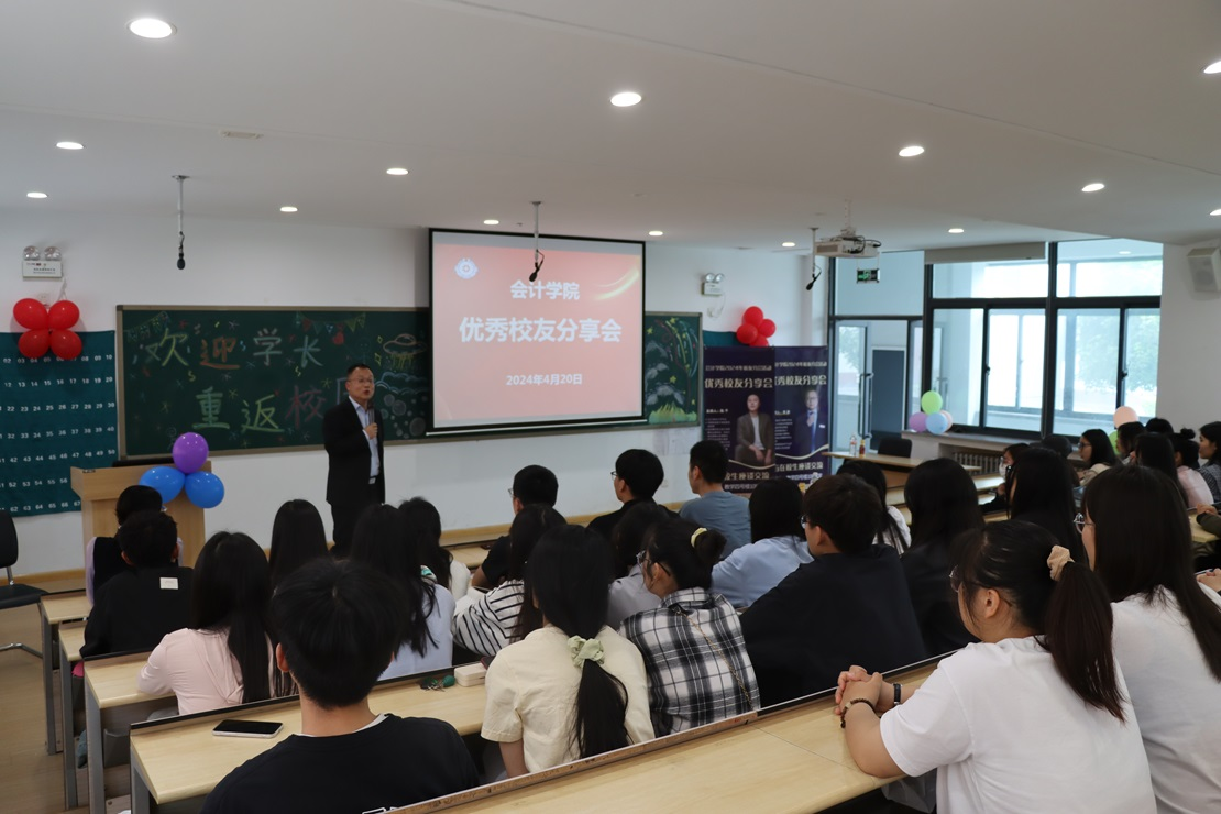 校友齐聚,共庆团圆,为了加深校友与母校的联系,增强校友对母校的归属感,会计学院于4月20日下午14:00在教学楼4号楼举办了校友分会活动。会计学院党委书记张蕾、副院长张新成、行政秘书兼团委书记陈刚、校友专员董婉婉、教师代表、辅导员代表及校友代表30余人参与活动。