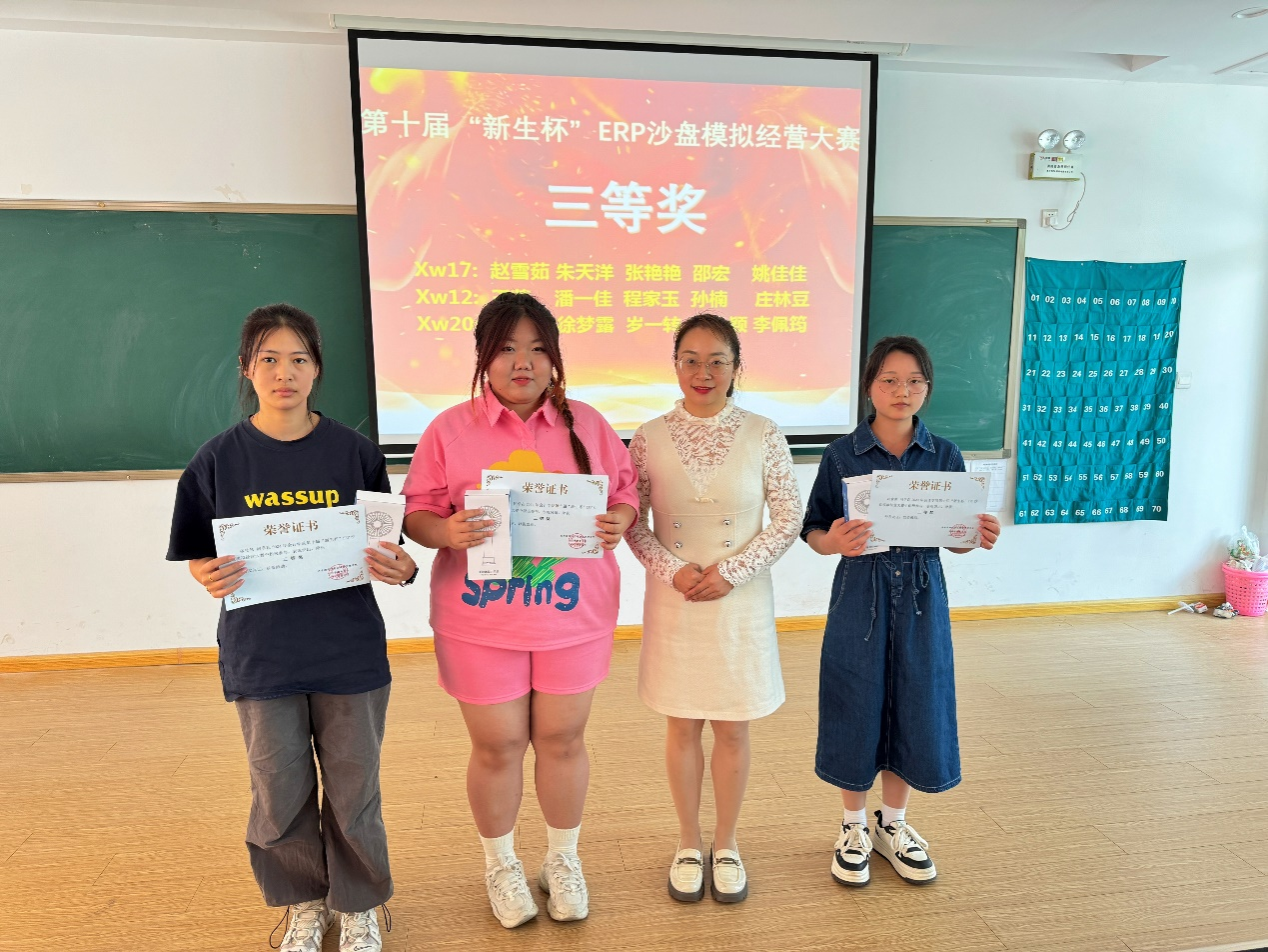 为了激发学生们对专业的热情,提升实践能力,会计学院沙盘协会于4月13日至4月14日在商管楼312成功举办了第十届新生杯ERP沙盘模拟精英大赛,并于4月24日在教学楼四号楼108举办了颁奖仪式。出席本次活动的有会计学院行政秘书兼团委书记陈刚,23级年级团总支书记、资助工作专员、辅导员胡翔宇,社团指导老师张瑞娅,29届社团联合会理事长王赛迪。