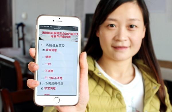 2016年12月15日,汤阴县“懒政怠政为官不为问责年网上评责”活动在收集群众投票。该县13个参评部门在县政府门户网站“懒政怠政为官不为问责年”评责活动专栏展示各自的工作成效,接受社会公众考评和监督。图片来源:河南日报资料图片