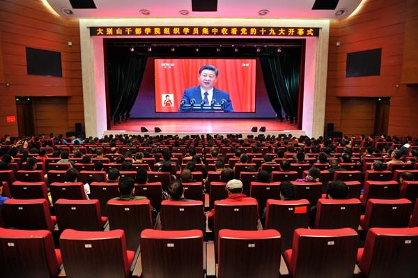 2017年10月18日,大别山干部学院的学员集中收看党的十九大开幕式。图片来源:河南日报资料图片