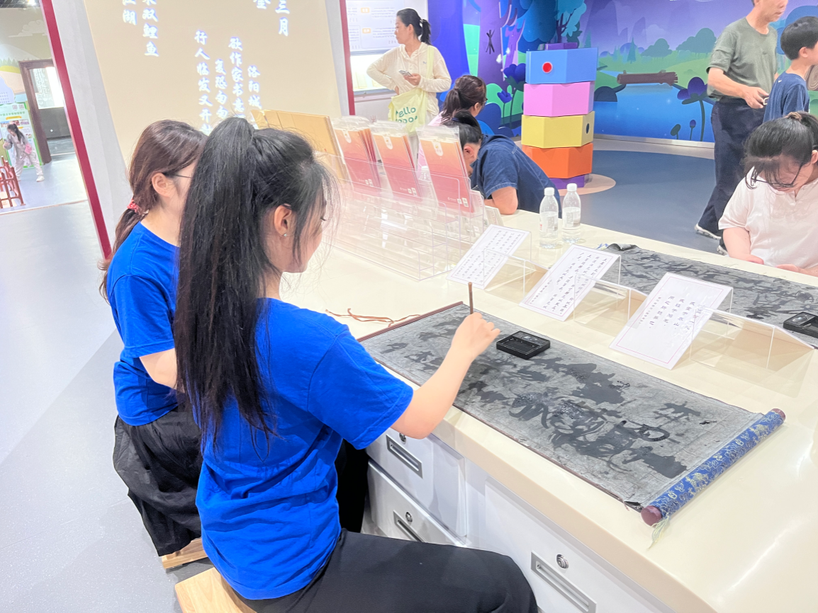 参观学习过程中,在工作人员的专业指导下,团队成员们亲身体验了甲骨文书写。手握着笔,一笔一划认真临摹,在笔墨流转间感受古老文字的书写韵律与独特韵味。随后,大家还通过制作文字书签、临摹经典典籍等形式,进一步加深了对汉字构造规律和丰富含义的理解,让抽象的文字知识变得可触可感。