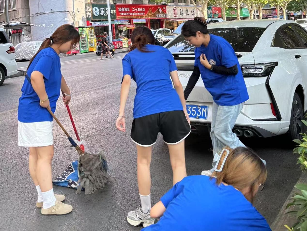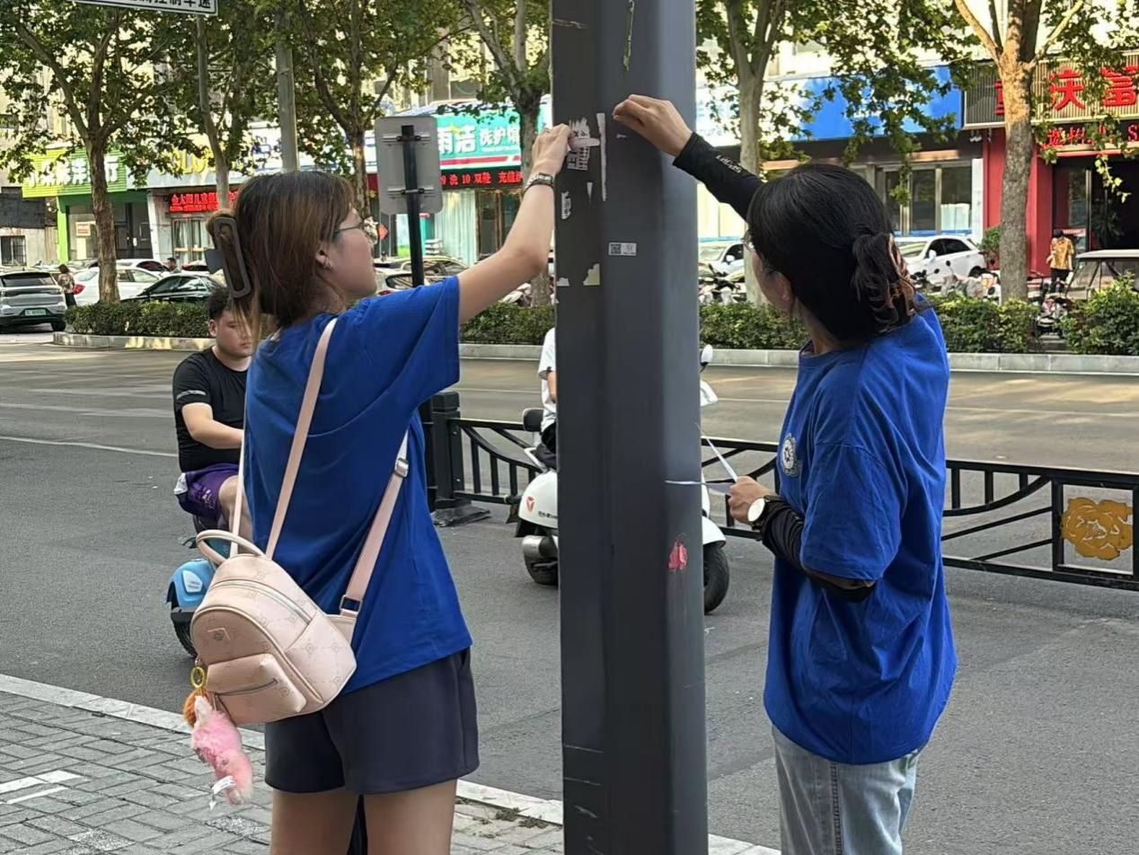 7 月 31 日,开展清除城市“牛皮癣”活动。成员们对墙面、电杆上的小广告进行耐心清理,当斑驳的表面露出原本的颜色,大家真切感受到:大学生社会实践从来不是单向付出——在为社区添一份洁净的同时,也在真实生活中读懂了“奉献”的分量。