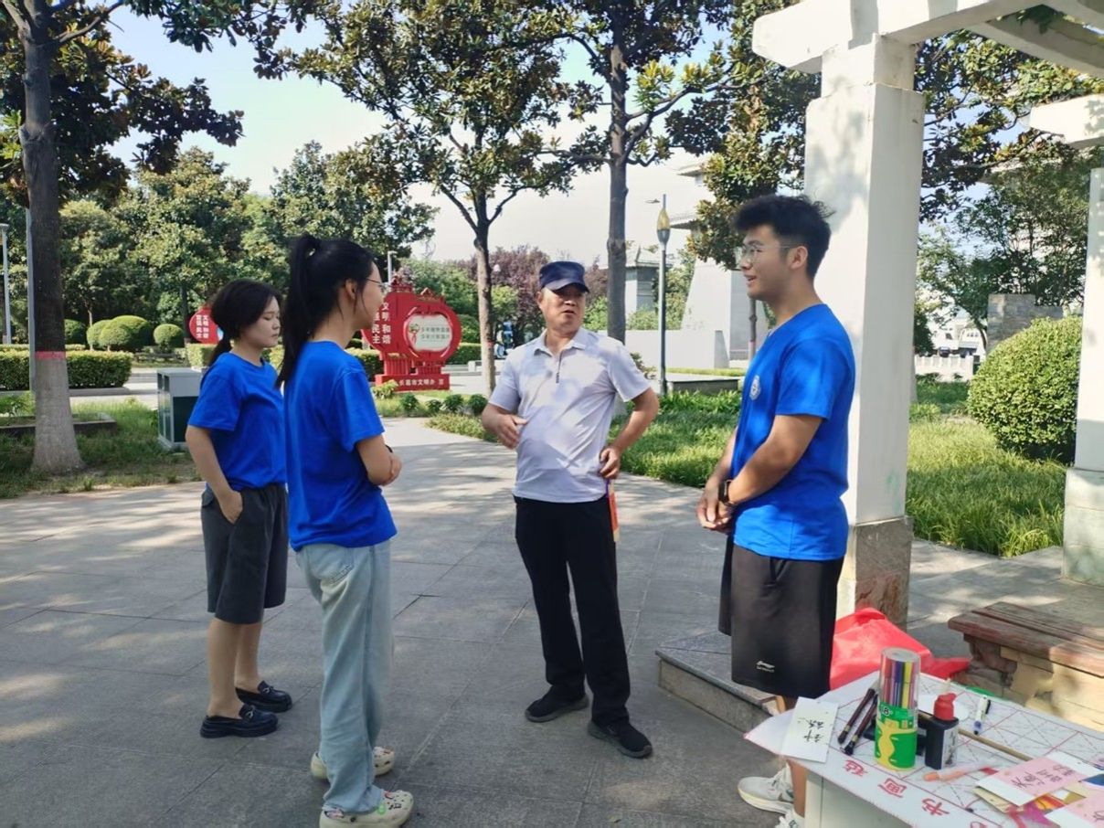 钟繇书法广场当日热闹非凡,瞬间化身为文化传播的露天课堂。实践团成员手持精心准备的宣传资料,向过往市民热情介绍钟繇书法文化,与书法爱好者们深入交流对书法内涵的理解与感悟。