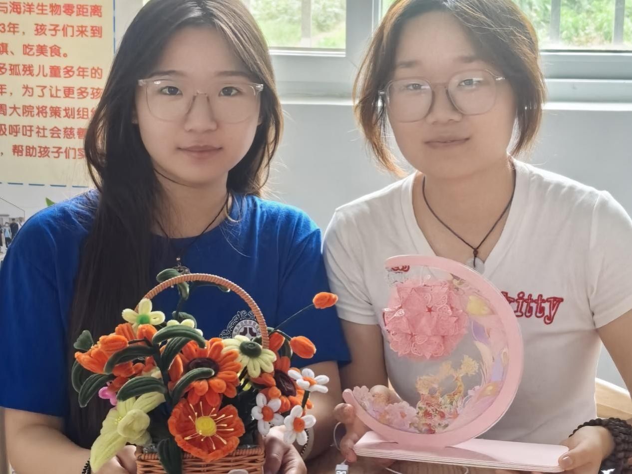 图2:手工趣味课堂志愿者及作品展示