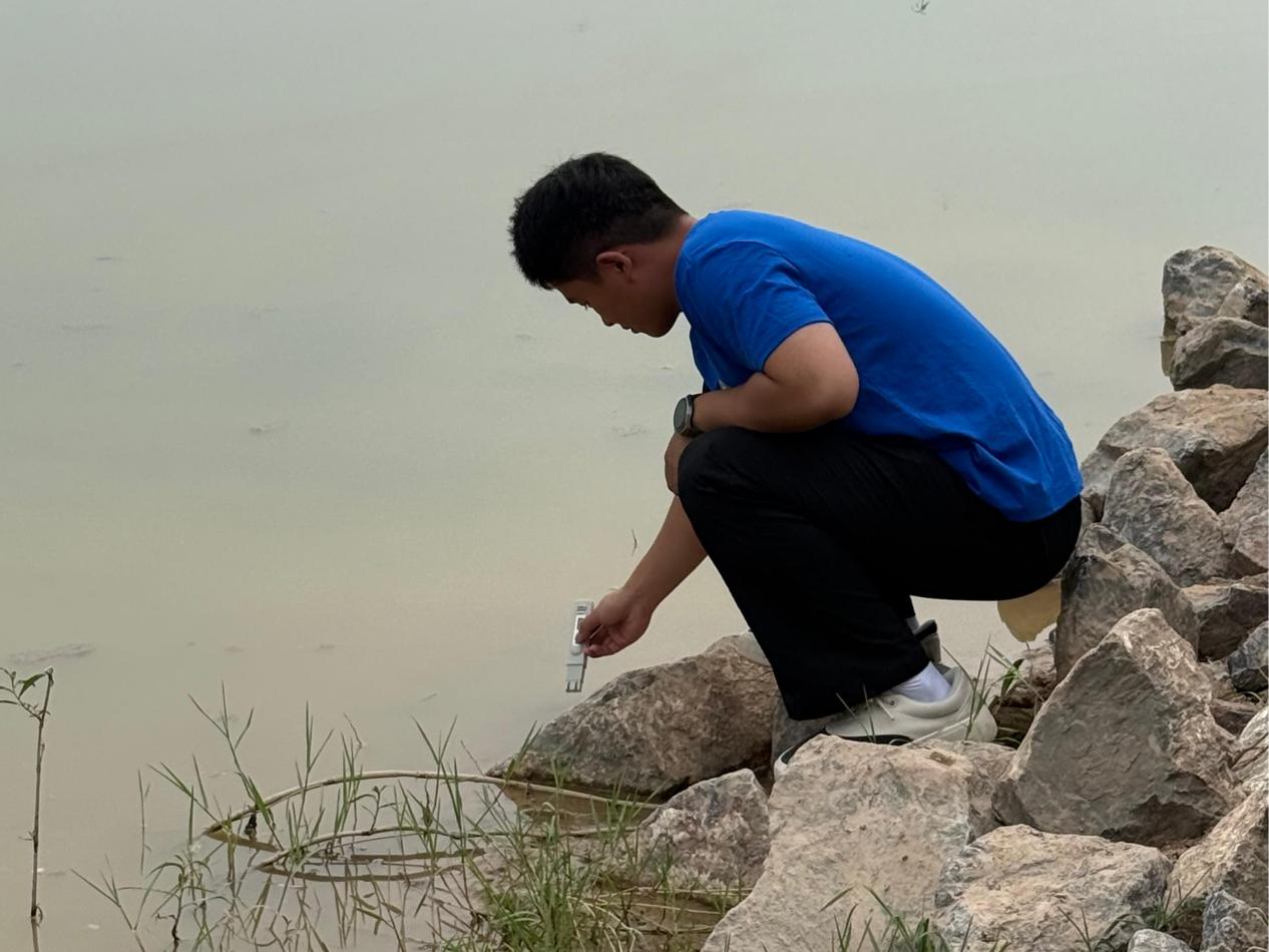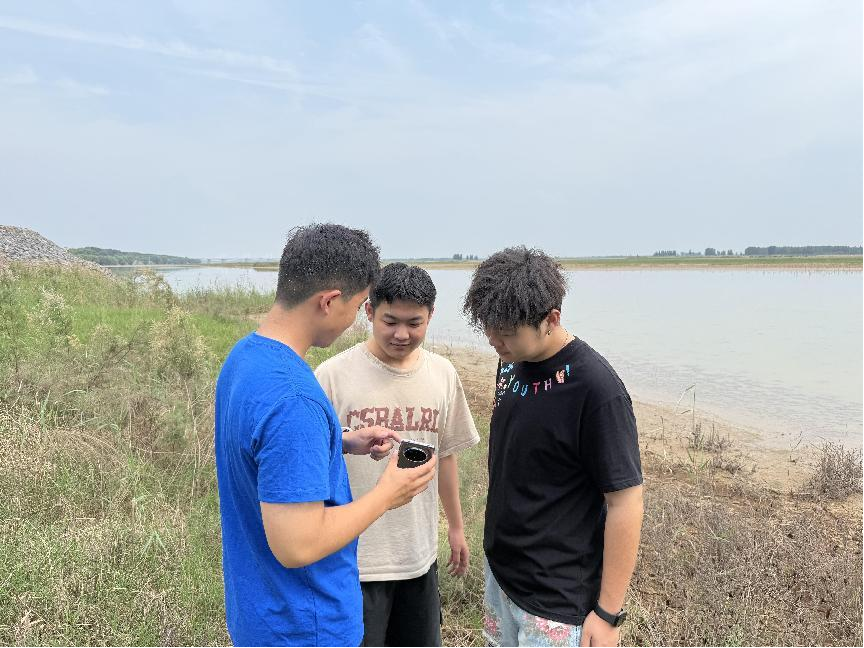 抵达黄河岸边,实践团迅速投入工作。在河畔,成员们分组协作,围绕黄河水质展开调研。在一处河滩,小组成员全神贯注地将检测仪器轻探入河水,凝视数据变化,为获取精准水质信息反复操作。这些数据成为洞察黄河生态状况的“窗口”,不仅助力后续生态保护建议的提出,也让同学们对黄河生态保护的复杂性有了更深刻的认知。