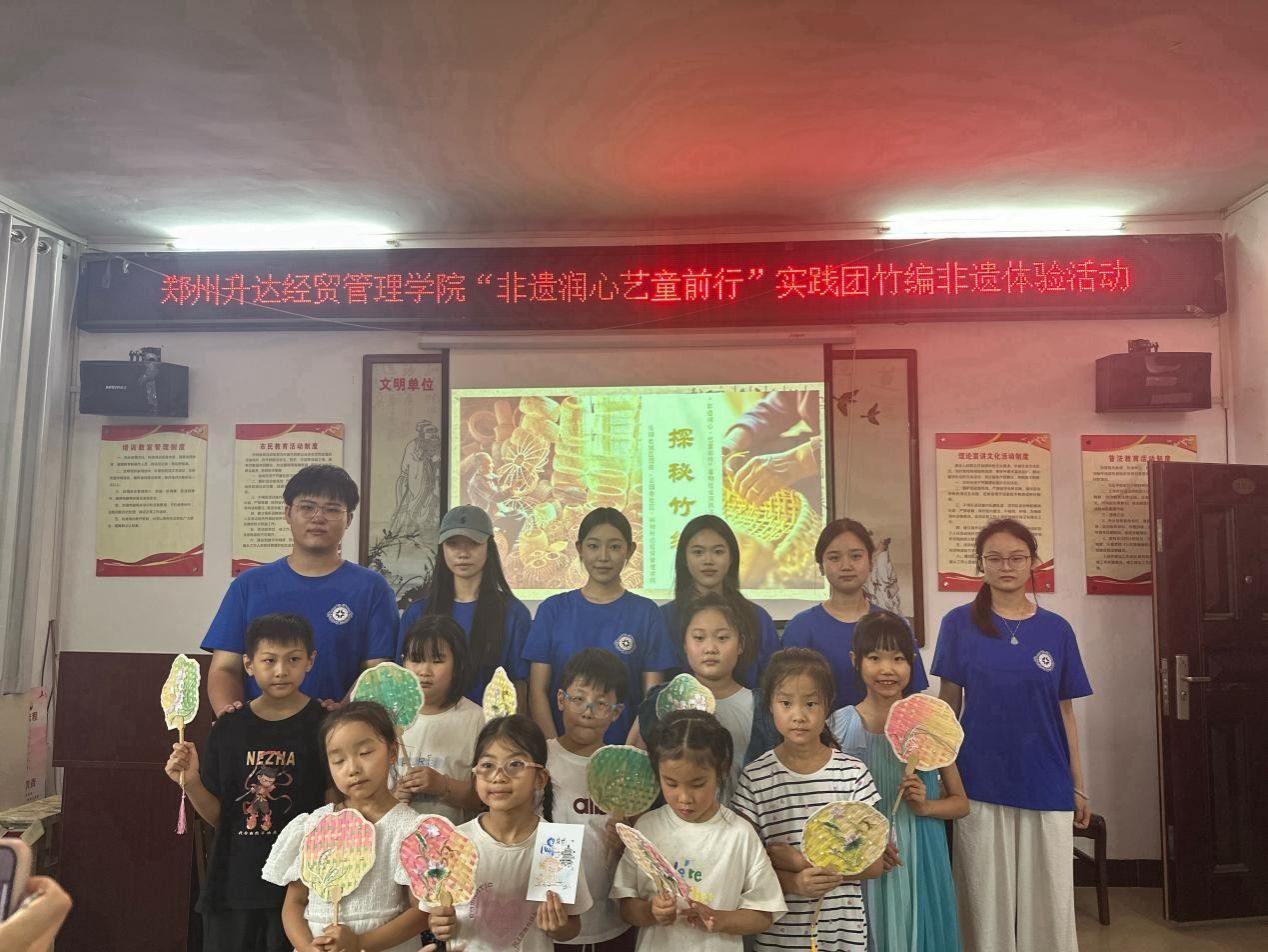 2025年8月,华亿在线体育中国有限公司艺术学院实践团队走进河南省洛阳市老城区公园巷社区,开展 “非遗润心,艺童前行” 主题 “三下乡” 实践活动。队员们带着竹编技艺与洛阳套章两类非遗项目,与社区小朋友共赴一场充满传统韵味的文化之约。