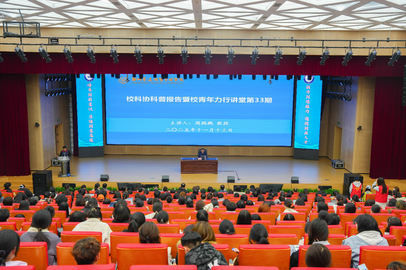 11月13日下午,学校新图书馆第三报告厅内气氛热烈、座无虚席。受校科协、校团委邀请,第十四届“挑战杯”中国大学生创业计划竞赛“金奖”项目指导教师、郑州大学三级教授周鹍鹏受邀作校科协科普暨校青年力行讲堂(第33期)学术报告。校党委副书记、副校长、科协副主席张金安到会指导,各学院180余名骨干教师、400余名赛事团队、大学生科研项目负责人参加报告会。报告会由校团委书记李霄锋主持。