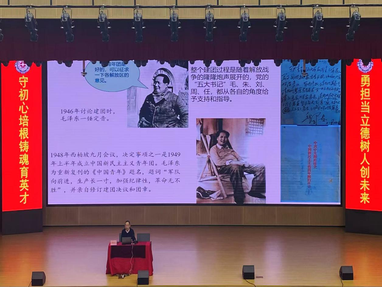 报告会上,韩晓东教授以“党领导下的中国青年运动的百年历程与经验启示”为主题,系统梳理了在党的坚强领导下中国青年运动波澜壮阔的百年征程。他深刻指出,五四运动作为中国青年运动的伟大开端,有力促进了马克思主义在中国的广泛传播,标志着中国青年作为一支独立而重要的政治力量登上了历史舞台。随后,韩教授详细阐述了共青团在党的直接领导下创建与发展、并随时代任务不断演进名称的光辉历程,着重强调,注重团员质量、从严管团治团是共青团组织永葆生机活力、担当先锋使命的宝贵经验与一贯原则。