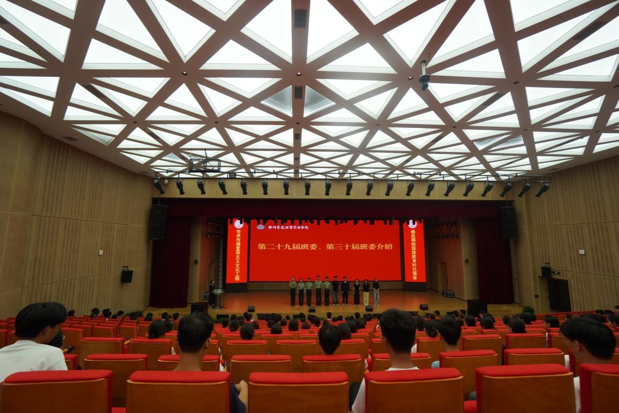 随后,第二十九届、第三十届班委依次亮相,以昂扬的姿态展现国旗班人的精神风貌,为新成员树立榜样。班委强调,国旗班不仅是一支纪律队伍,更是一个凝聚荣誉、责任与感情的集体,希望新队员能够尽快融入集体。