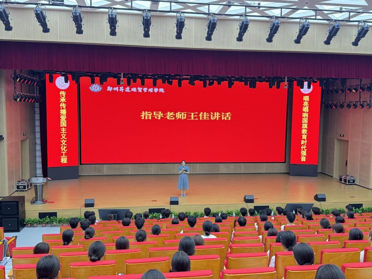 指导老师王佳从训练、纪律与成长等方面为新成员答疑解惑,叮嘱大家珍惜机会、刻苦磨砺,在国旗班的淬炼中成为更优秀的自己。