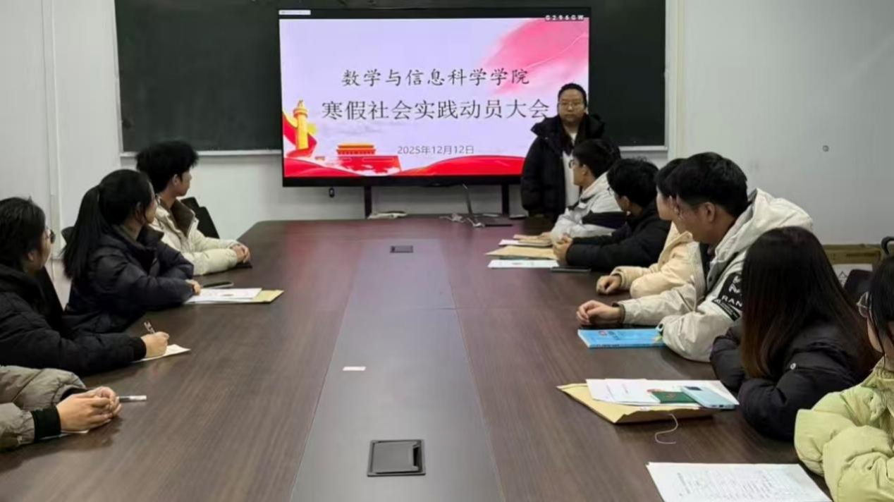 为引导青年学子在实践中提升素养、增长才干,数学与信息科学学院于2025年12月12日组织各班学生代表召开2025年寒假社会实践安全教育动员会。本次会议旨在部署实践工作、强化安全意识、明确实践方向,本次会议由团学骨干李雨飞主持。